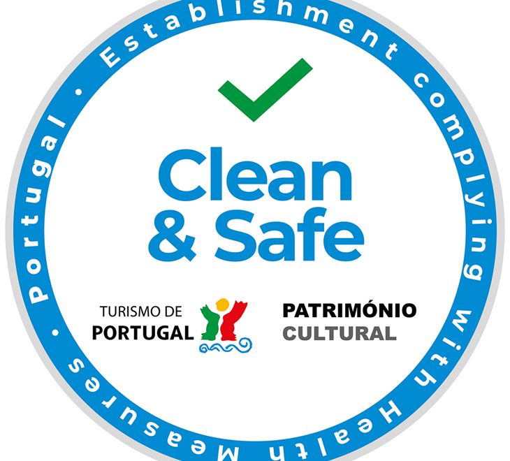 O Turismo de Portugal criou o Selo Clean & Safe para assinalar as atividades que cumpram as normas e recomendações da Direção-Geral da Saúde e que assegurem o cumprimento dos requisitos de higiene e limpeza para prevenção e controlo do vírus COVID-19 e de outras infeções.